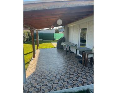 Das Haus verfügt über eine große überdachte Terrasse, die vom Wohnzimmer aus zugänglich ist.