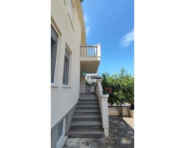 Das Einfamilienhaus wurde auf einem 670 m2 großen Grundstück errichtet und verfügt über eine Gesamtnettofläche von 370 m2. Es besteht aus drei Etagen: Keller + Erdgeschoss + 1. Stock. Im Untergeschoss, das sich über die gesamte Etage erstreckt, befinden sich ein Maschinenraum, ein großer Sozialraum, eine separate Garage und ein separater Abstellraum. Über eine Innentreppe gelangt man ins Erdgeschoss, wo sich eine komfortable Einzimmerwohnung mit kleinem Flur, großem Wohnzimmer, Küche und Esszimmer, Schlafzimmer und komfortablem Badezimmer befindet. Eine Innentreppe führt in den 1. Stock, wo sich zwei komplett möblierte Einzimmerwohnungen mit Terrassen befinden. Jedes besteht aus einem Eingang, einer Küche, einem Wohnzimmer, einem Schlafzimmer und einer Terrasse. Eines davon verfügt über eine zusätzliche Schlafzimmergalerie, während das Wohnzimmer ausgerichteten Wohnung einen wunderschönen Blick auf das Meer bieten. Der Außenbereich umfasst einen gepflegten Garten mit mediterranen Pflanzen, ein Nebengebäude (Lager), eine Sommerküche und einen Innengrill. Der Hof ist komplett eingezäunt und mit vielen Blumen, Kräutern, Äpfeln, Kumquats, Kirschen, Aprikosen, Pflaumen, Mandarinen, Avocados, Zitronen und anderen mediterranen Kräutern bepflanzt. Im Garten befindet sich ein Grundwasserbrunnen, der zur Bewässerung genutzt wird. Im gesamten Haus ist eine Zentralheizung installiert. Das Haus ist an die städtische Kanalisation angeschlossen. Parkplätze für vier Autos sind vorhanden.