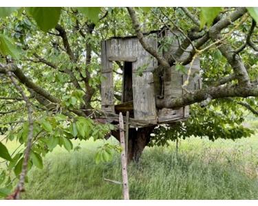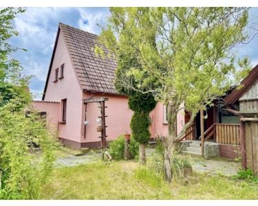 Das Grundstück ist großzügig, hier wächst eine alte Kirsche mit einem alten Baumhaus. Dieses Haus wird in einem umgeräumten Zustand verkauft.