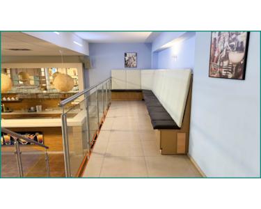 Ein Teil der Empore mit Sitzreihe und Wartebereich