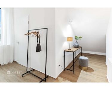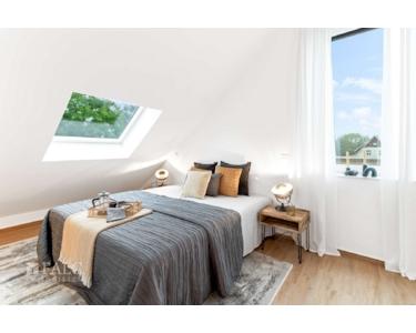 Im Obergeschoss befinden sich zwei großzügige und lichtdurchflutete Kinderzimmer – ein perfekter Rückzugsort für den Nachwuchs oder auch ideal als Büro oder Gästezimmer nutzbar. Zudem bietet das Obergeschoss ein voll ausgestattetes Badezimmer mit Dusch und Badewanne, sowie einem geräumigen Hauswirtschaftsraum (inkl. Anschluss für die Waschmaschine). Im Dachgeschoss erwartet Sie das Hauptschlafzimmer mit viel Privatsphäre sowie einem eigenen, stilvoll ausgestatteten Bad en Suite – ein echtes Highlight für Eltern oder anspruchsvolle Bewohner, die Wert auf Komfort legen.