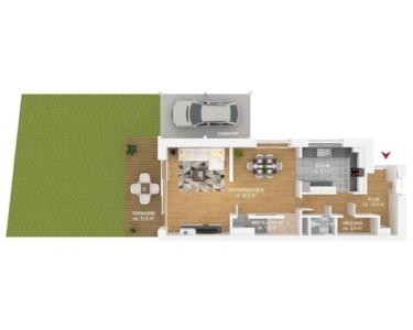Mit einer Wohnfläche von ca. 126 m² bietet das Haus viel Raum für Ihre Wohnträume. Herzstück ist das helle, offen gestaltete Erdgeschoss mit Zugang zur sonnigen Süd-West-Terrasse – ideal für entspannte Nachmittage und gesellige Abende. Die leichtläufigen Hebeschiebetüren verbinden den Wohnbereich harmonisch mit dem Außenbereich und sorgen für ein herrlich luftiges Wohngefühl.