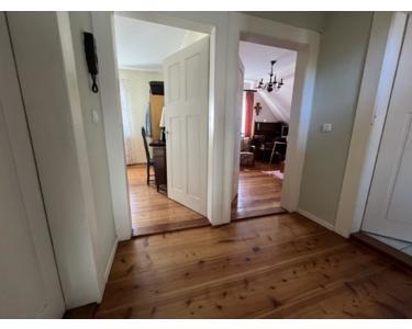 Die Holztreppe und der Dielenboden geben dem Haus einen Altbau-Charme und laden zum gemütlichen Wohnen ein.