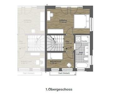 Das Obergeschoss bietet Ihnen einen privaten Rückzugsort, in dem Ruhe und Komfort im Mittelpunkt stehen. Mit seiner cleveren Raumaufteilung verbindet das Badezimmer funktionale Elemente wie Dusche, Badewanne und Waschmaschine zu einer harmonischen Einheit – praktisch und modern zugleich. Ein zusätzliches Zimmer schafft Raum für ein Homeoffice oder kreative Hobbys – flexibel nutzbar, ganz nach Ihren individuellen Bedürfnissen.