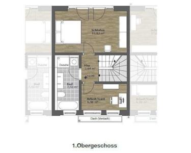Das Obergeschoss bietet Ihnen einen privaten Rückzugsort, in dem Ruhe und Komfort im Mittelpunkt stehen. Mit seiner cleveren Raumaufteilung verbindet das Badezimmer funktionale Elemente wie Dusche, Badewanne und Waschmaschine zu einer harmonischen Einheit – praktisch und modern zugleich. Ein zusätzliches Zimmer schafft Raum für ein Homeoffice oder kreative Hobbys – flexibel nutzbar, ganz nach Ihren individuellen Bedürfnissen.