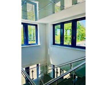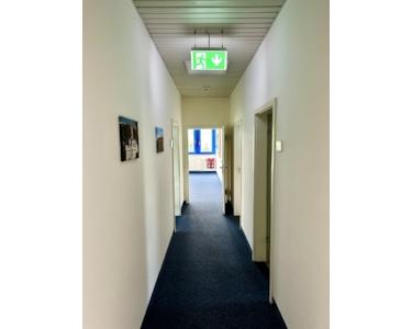 Die Büroflächen sind hochwertig ausgestattet und bieten eine angenehme Arbeitsumgebung. Für Mitarbeiter stehen getrennte Sanitärbereiche sowie separate Duschen mit Umkleiden zur Verfügung. Eine integrierte Pantryküche rundet die Aufenthaltsqualität ab.