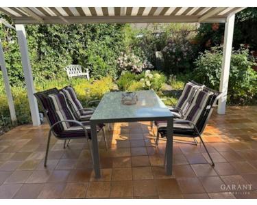 Vom Wohnzimmer aus gelangen Sie über die nach Süden ausgerichtete Terrasse direkt in den liebevoll gepflegten Garten, der ringsum angelegt wurde und das Haus umschließt.
