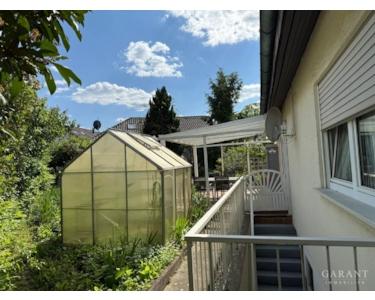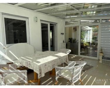 Ein absolutes Highlight ist der große, einladende Wintergarten, von dem Sie ebenso in den Garten gelangen. Im oberen Bereich des Hauses, den Sie über eine Treppe vom Eingang aus erreichen, befindet sich ein kleines Tageslichtbad, ein Schlafzimmer und ein weiteres Zimmer.