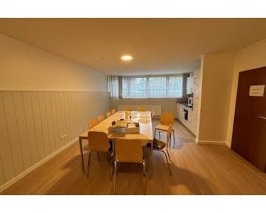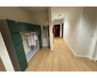 - Geräumiger Pausenraum mit integrierter Küchenzeile