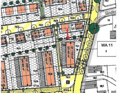 Grundlage ist der Geltungsbereich des qualifizierten Bebauungsplans Nr. 1703, der für dieses Areal W 11 eine zweigeschossige Bauweise (plus Dachgeschoss -1- Vollgeschoss) und eine maximale Geschossfläche von 1.150 m2 vorsieht.
