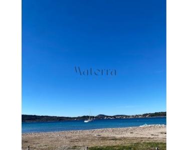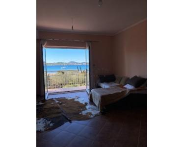 ERSTER STOCK: Ein großes offenes Wohnzimmer mit Zugang zu einem Balkon, der über die gesamte Breite des Hauses verläuft und einen Blick auf das Meer und die umliegenden Inseln bietet, zwei Schlafzimmer, ein Badezimmer und eine Toilette.
