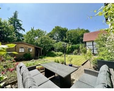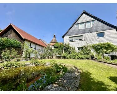 Es liegt idyllisch an einem Bachlauf mit Blick zum nahe gelegenen Wald und doch in zentraler Ortslage.