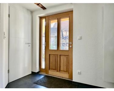 Die im Jahr 2024 sanierte Wohnung im Erdgeschoss erreichen Sie direkt vom Hof des Grundstücks aus über eine im Jahr der Sanierung verbaute Haustür aus massivem Eichenholz.