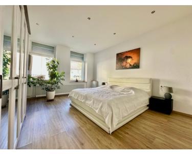 Über eine Massivholz-Treppe erreichen Sie die Wohnung im Obergeschoss, diese großflächige Wohnung erstreckt sich über die gesamte Länge des Gebäudes von der Garten- bis hin zur Vorderseite des Hauses.