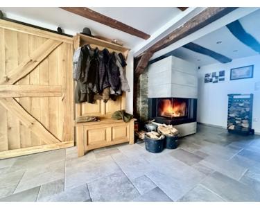Für eine besonders gemütliche Atmosphäre sorgt hier der moderne Kaminofen.