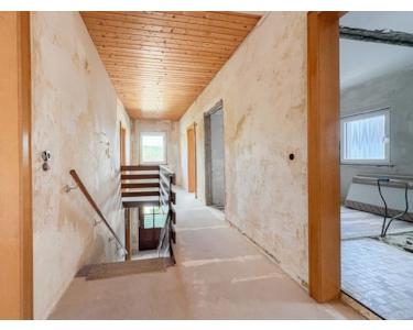 Dieses entkernte Einfamilienhaus in ruhiger Hanglage bietet eine hervorragende Basis für alle, die sich den Traum vom individuell gestalteten Eigenheim erfüllen möchten. Der Innenausbau wurde bereits in Teilen begonnen, sodass erste Schritte in Richtung Modernisierung gemacht sind – gleichzeitig bleibt Ihnen noch ausreichend Raum, um eigene Ideen umzusetzen. Besonders praktisch: Das Badezimmer im Erdgeschoss ist bereits funktionstüchtig und ermöglicht eine Nutzung auch während der weiteren Ausbauarbeiten. Ein besonderes Merkmal des Hauses ist die Hanglage, durch die sich vom Obergeschoss ein direkter Zugang in den terrassenförmig angelegten Garten ergibt. Vom Garten aus genießen Sie einen freien, unverbaubaren Blick auf den Ort – ideal für entspannte Stunden im Grünen.