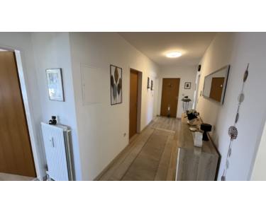 Die ca. 97 m² große Obergeschosswohnung ist gleich aufgeteilt wie die Erdgeschosswohnung und verfügt über einen Balkon.