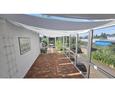 OG: 2 Zimmer (sind der Wohnung im EG: zugeordnet). - Wohnzimmer, Küche, Duschbad, Wintergarten, Dachterrasse.