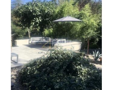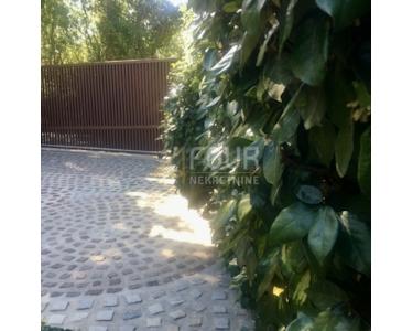 Der Garten ist sorgfältig gepflegt, geschmückt mit verschiedenen Pflanzen und mediterranen Bäumen, und umfasst ein Gartenhaus von 22 m² sowie ein Nebengebäude von 13 m².