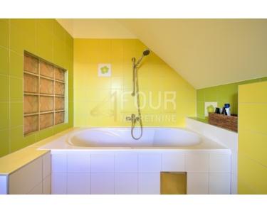 Das Haus hat eine Gesamtfläche von 198 m², verteilt auf drei Etagen, und befindet sich auf einem 1.124 m² großen Grundstück. Im Keller befindet sich ein speziell isolierter Raum mit doppelten Wänden, der als Musikstudio genutzt wird. Im Erdgeschoss befinden sich eine Küche mit Essbereich, ein Schlafzimmer, ein Badezimmer und eine Garage, während das hohe Dachgeschoss ein Wohnzimmer, ein weiteres Schlafzimmer, ein weiteres Badezimmer und eine Terrasse zum Sonnenbaden oder Entspannen umfasst.
