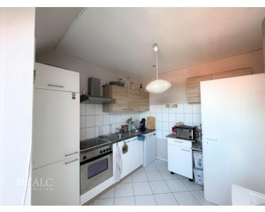 Angrenzend an das Wohnzimmer befindet sich die Küche, die funktional gestaltet ist und über genügend Arbeitsfläche sowie Stauraum verfügt. Hier können Sie Ihre kulinarischen Fähigkeiten entfalten und gleichzeitig den Blick auf den Balkon genießen, der direkt von dem Wohnzimmer aus zugänglich ist. Der Balkon bietet einen ruhigen Rückzugsort im Freien, perfekt für entspannte Stunden an der frischen Luft.