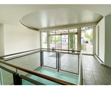 Ihre Kunden werden über eine beidseitig begehbare Treppe in den hellen Eingangsbereich geführt. Von dort gehen mehrere Räume für verschiedene Nutzungsmöglichkeiten, wie z. B. Büro- oder Lagerfläche, ab. Ein Blickfang ist die abgehängte Decke im Verkaufsraum.