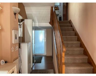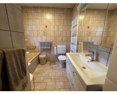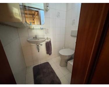 Zugleich gibt es auf einer halben Ebene vom Erdgeschoss zum 1. Obergeschoss ein Gäste-WC.
