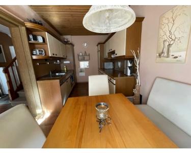 Das Erdgeschoss besteht aus Flur, Küche, Wohnzimmer mit Specksteinofen. Als Durchgangszimmer zum Schlafzimmer besteht noch ein Lesezimmer oder wie immer man es auch nutzen möchte. Ebenso befinden sich im Erdgeschoss noch Wasch- und Trockenraum und ein kleines Bad.