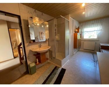 Noch ein Schlafzimmer ist vorhanden und ein Zimmer, dass mit einer Dusche und einem Waschbecken ausgestattet ist. Hier wurde auch die Gasheizung verbaut - derzeit wird das Zimmer als Bügelzimmer und Hauswirtschaftsraum genutzt.