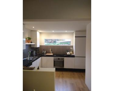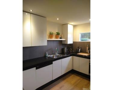 Grote complete L-keuken voorzien van koel-vries combinatie, oven, inductie kookplaat en vaatwasser