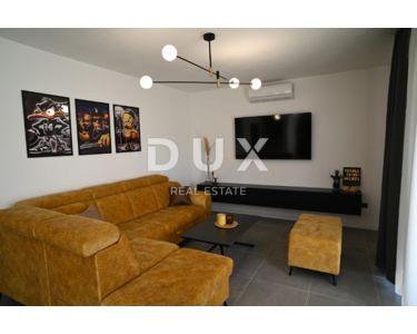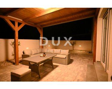 Zum Verkauf steht eine moderne Doppelhaushälfte mit Pool in ruhiger Lage in Vir, dem einzigen Teil der Insel, der an das Abwassersystem und die Wasserversorgung angeschlossen ist. Der Strand Straža ist nur 6 Gehminuten und der beliebte Strand Miljkovica 10 Minuten entfernt – ideal, um den Sommerspaß ohne Auto zu genießen. Diese geräumige Villa besteht aus einem Erdgeschoss und einem Obergeschoss. Das Erdgeschoss verfügt über ein Wohnzimmer, das mit der Küche und dem Esszimmer verbunden ist, ein Schlafzimmer, ein Badezimmer, einen Abstellraum und Zugang zu einer großen, teilweise mit einer Pergola überdachten Terrasse – ein perfekter Ort zum Entspannen im Schatten. Im Anbau befindet sich ein wunderschön angelegter Innenhof mit privatem Pool, der absolute Privatsphäre und Ruhe bietet. Im Obergeschoss befinden sich zwei weitere geräumige Schlafzimmer, jedes mit eigenem Badezimmer, sowie eine große Waschküche, die problemlos in ein zusätzliches Kinderzimmer umgewandelt werden kann. Die Villa ist mit Fußbodenheizung und Klimaanlage in allen Räumen ausgestattet, was ganzjährig für Komfort sorgt. Sie verfügt über drei Parkplätze, wird komplett und modern möbliert verkauft und ist ohne zusätzliche Investitionen bezugsfertig. Das Eigentumsverhältnis ist 1/1, und die Immobilie verfügt über eine Nutzungsgenehmigung, was sie sowohl für ganzjähriges Wohnen oder Sommerferien als auch für eine äußerst rentable touristische Investition ideal macht. Vir ist eine Insel, die durch eine Brücke mit dem Festland verbunden ist und für ihre zahlreichen Strände, das kristallklare Meer und die gut ausgebaute Infrastruktur bekannt ist. Sie bietet die perfekte Kombination aus friedlicher Familienatmosphäre und touristischem Potenzial – der perfekte Ort für alle, die ein Zuhause am Meer suchen oder in die Zukunft investieren möchten. Für weitere Informationen und eine Besichtigung kontaktieren Sie uns gerne – diese Gelegenheit sollten Sie sich nicht entgehen lassen.