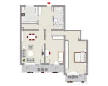 Die Wohnung erstreckt sich auf 3,5 Zimmer 2 Bäder, 2 Balkonen sowie eine Einbauküche.