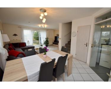 Das Erdgeschoss besteht aus einem Wohn-/Essbereich mit Zugang zur Terrasse und in den gepflegten Garten, offene Wohnküche inkl. Einbauküche, Flurbereich mit Garderobe und Gäste-WC (2024).
