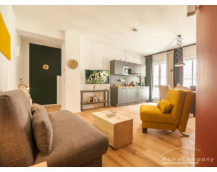 • Jedes Design-Apartment verfügt über eine voll ausgestattete Küchenzeile und Eichenholzböden.
