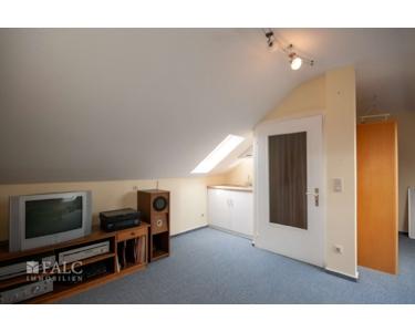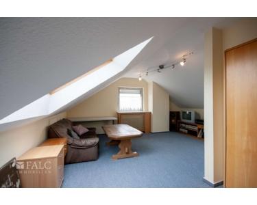 Das Dachgeschoss beherbergt ein weiteres Zimmer, das als Studio oder Hobbyraum genutzt werden kann. Die Dachschrägen verleihen dem Raum eine gemütliche Atmosphäre.