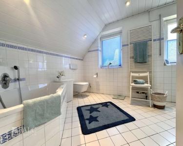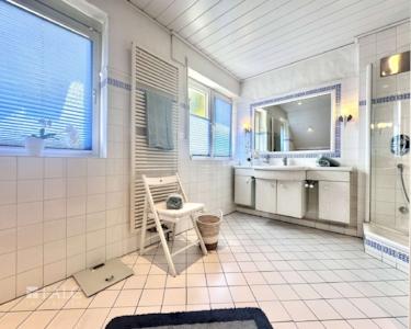 - Badezimmer mit Badewanne, Dusche und Doppelwaschbecken