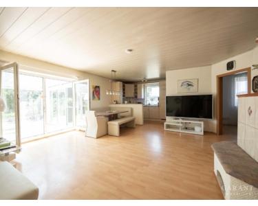 und Zusammensein. Große Fenster und der Zugang zur Süd/West-Terrasse mit Wintergarten holen