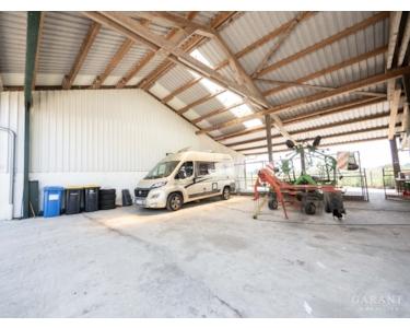 Remise mit Maschinenunterstand bietet viel Platz für große Fahrzeuge und Geräte.