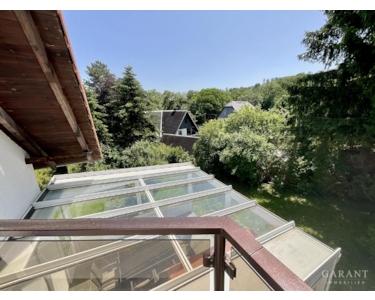 Auch das Dachgeschoss ist vollständig ausgebaut und bietet eine zweite Wohneinheit mit Wohnzimmer, Küche, Bad und zwei weiteren Zimmern. Der Balkon öffnet den Blick in den gepflegten Garten - ein Ort für entspannte Sommerabende.