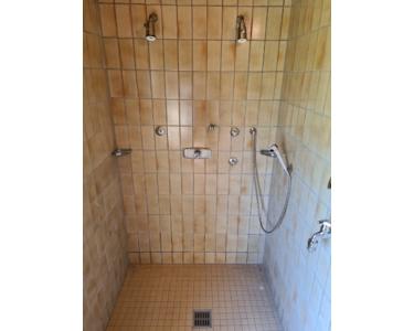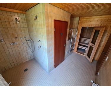 # Sauna mit Tauchbecken und großer ebenerdiger Dusche
