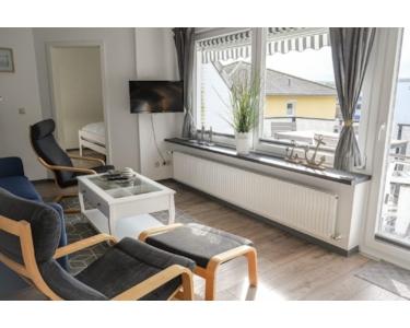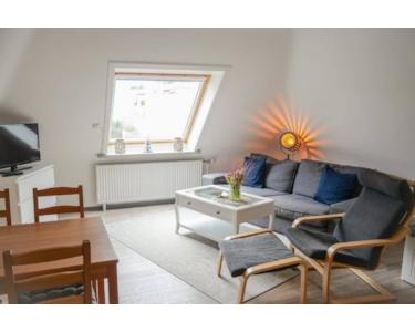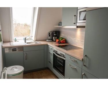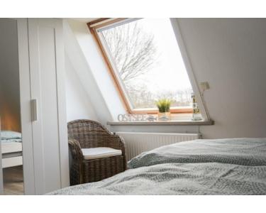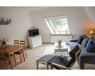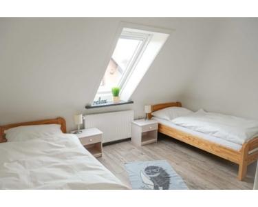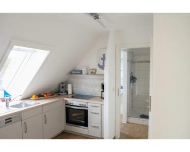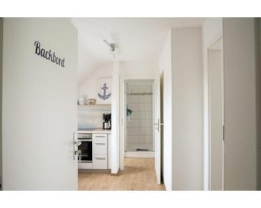 Im Dachgeschoss befinden sich die 3-Zimmer-Ferienwohnung "Backbord" mit Küche, Wohnzimmer mit Zugang zum Balkon, Schlafzimmer und Kinderzimmer sowie die 2-Zimmer-Ferienwohnung "Steuerbord" mit Wohn- und Schlafzimmer, sep. Schlafzimmer, Küche mit Einbauküche, Tageslichtbad mit Dusche und WC.