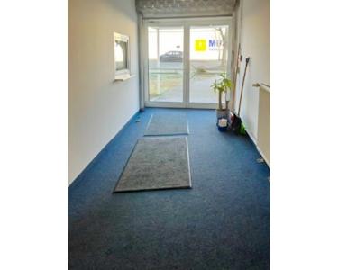 - Lagerbüro mit innenliegenden Rollgittern an Außentür und Fenstern