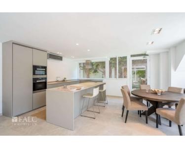 Trotz der zentralen Lage bietet das Haus absolute Privatsphäre und somit ein ruhiges, entspanntes Wohnambiente. Das Erdgeschoss beeindruckt durch einen großzügig gestalteten offenen Wohn- und Küchenbereich, der lichtdurchflutet ist und direkten Blick auf den Poolbereich ermöglicht.