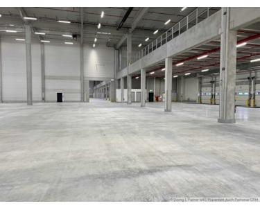 Zur Lagerung von wassergefährdeten Stoffen und Lithium-Ionen-Batterien verfügt die gesamte Halle unterhalb der Bodenplatte eine WGK-Abdichtung als Folie und die Verladehöfe sind ebenfalls speziell ausgebildet.