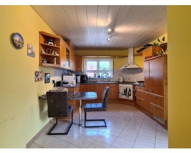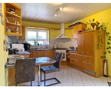 Auch von der großen zum Wohn-Essbereich offenen Wohnküche gelangt man durch eine Fenstertür ebenfalls ebenerdig auf die große sonnenbeschienene Südwestterrasse.