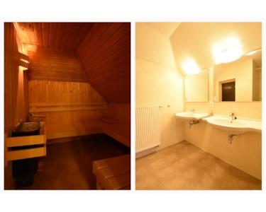 Dit is weer een luxe.... een badkamer met een sauna. Ook heeft deze badkamer een douche en 2 wasbakken.