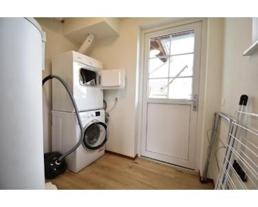 Schöne große geradlinige Küche. Natürlich mit Einbaugeräten wie 4-Flammen-Herd, Geschirrspüler, Dunstabzugshaube aus Edelstahl, Kühlschrank mit Gefrierfach und einer Kombi-Mikrowelle. Durch die Küche gelangt man in den Abstellraum, wo sich die Waschmaschine und der Trockner befinden.