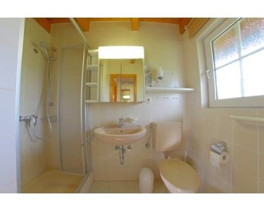 Bad deckenhoch gefliest mit Duschkabine und WC