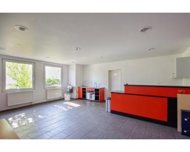 Direkt vom Fachmarkt zugänglich ist ein Sozialraum mit Küchenzeile sowie die Sanitäranlagen.