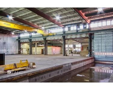 Es handelt sich um unbeheizte Kalthallen. Teilbereiche sind mit Deckenstrahlheizungen (Dunkelstrahler) ausgestattet. Ein Deckenkran mit einer zulässigen Traglast von 5 Tonnen ist über alle drei Hallenbereiche steuerbar. Vor einer möglichen Inbetriebnahme ist eine technische Prüfung sowie ggf. noch Instandsetzungsarbeiten erforderlich. Dies gilt ebenso für eines der Tore.
